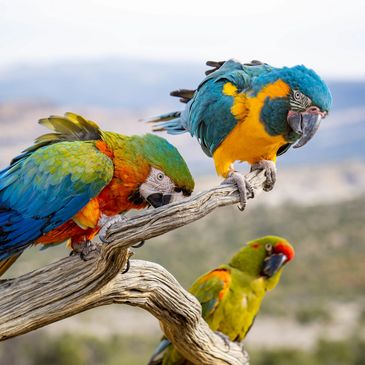 3/4″ – 1″ Amazons, african greys, mini macaws, goffins cockatoos