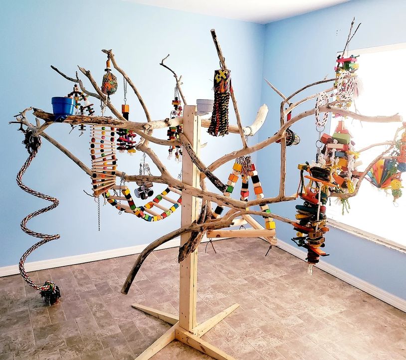 Send us photos at info@birdtricks.com or tag a moderator in our Facebook group BirdTricks Q&A! There's also a great group on Facebook called Home Aviary Design that can give you even more inspiration based on what people have home made or custom designed for their birds.